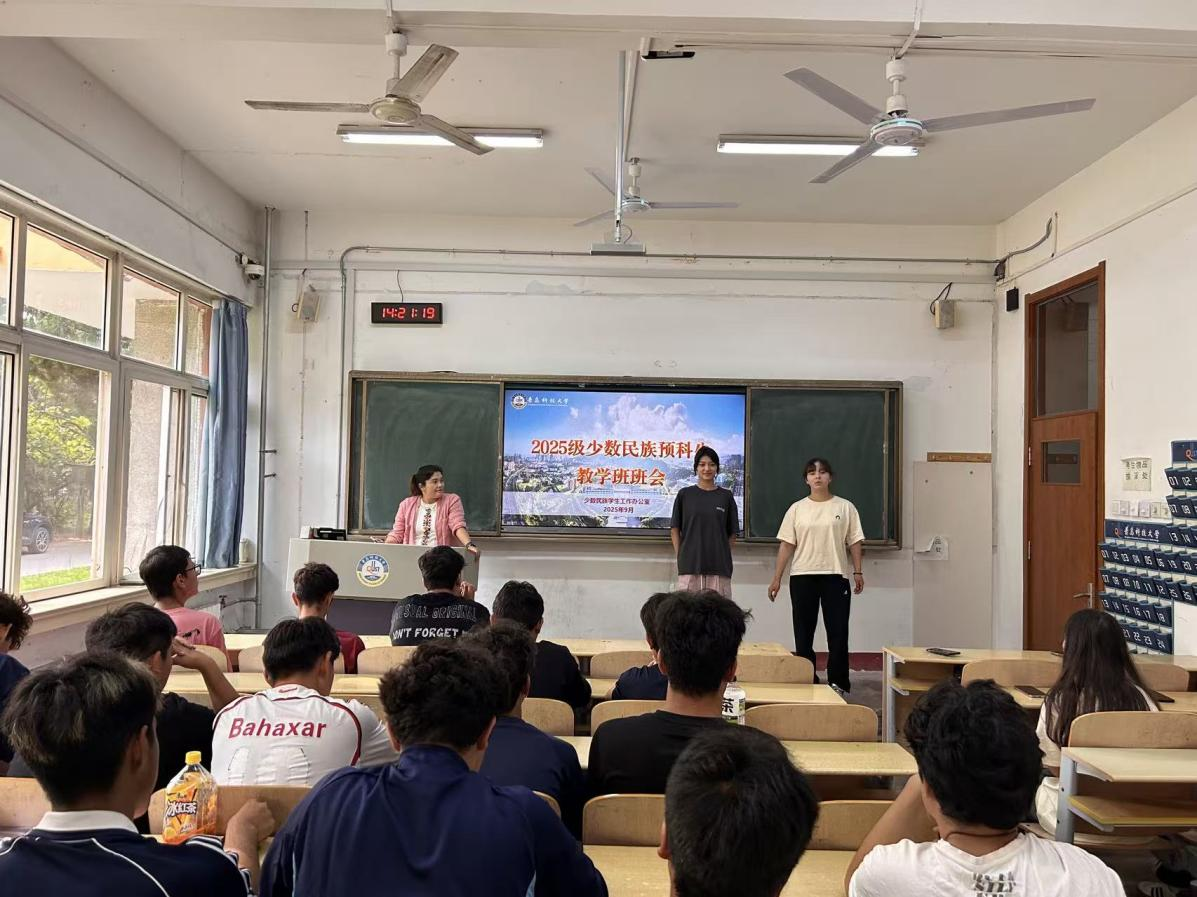 近日,2025级少数民族预科生教学班专题班会在崂山、四方校区召开。班会由少数民族专职辅导员热孜亚主持,2025级全体预科生参加会议。