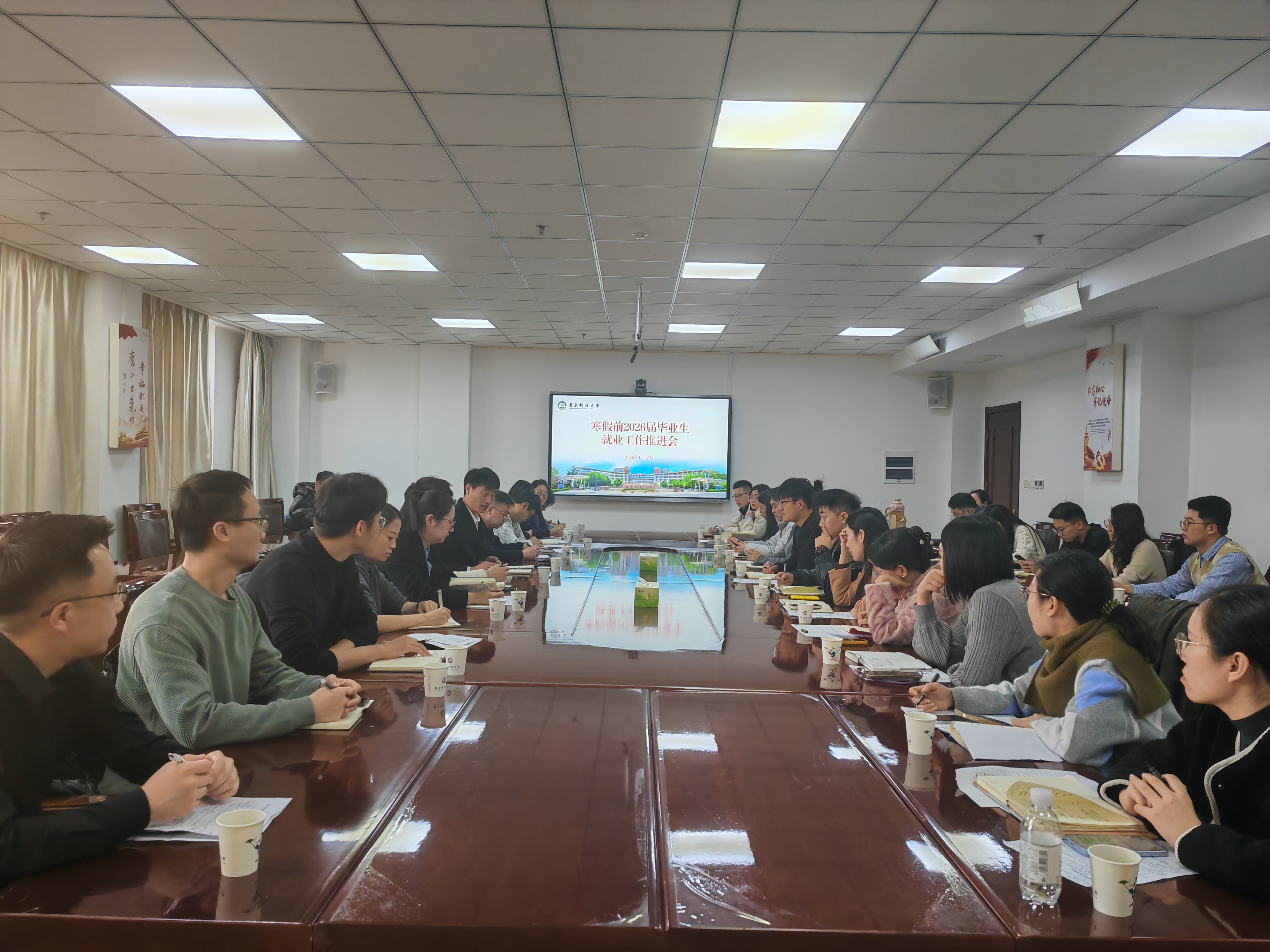 为抢抓寒假就业关键期,扎实推进2026届毕业生就业工作,1月15日,学校召开寒假前2026届毕业生就业工作推进会。党委学生工作部副部长徐华、就业指导中心相关人员、全体毕业生年级辅导员参加会议。