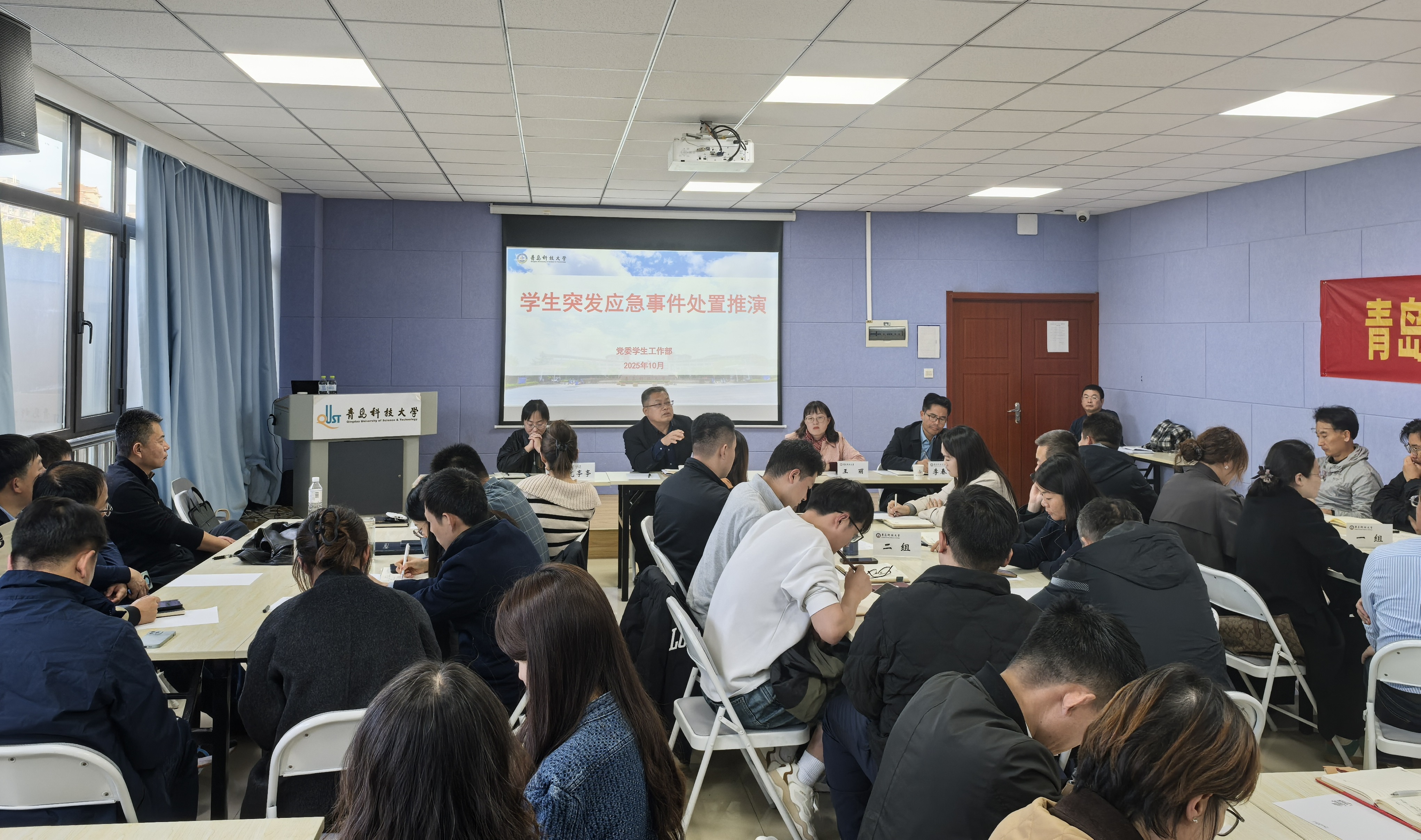 10月22日,党委学生工作部在崂山校区双创学院308举办学生突发应急事件处置推演活动,特邀嘉宾安全管理处处长王永波、党委学生工作部部长王丽及相关负责同志出席活动,各学院(校区)分管学生工作书记、学工办主任(主持工作副主任)和辅导员代表参加活动。