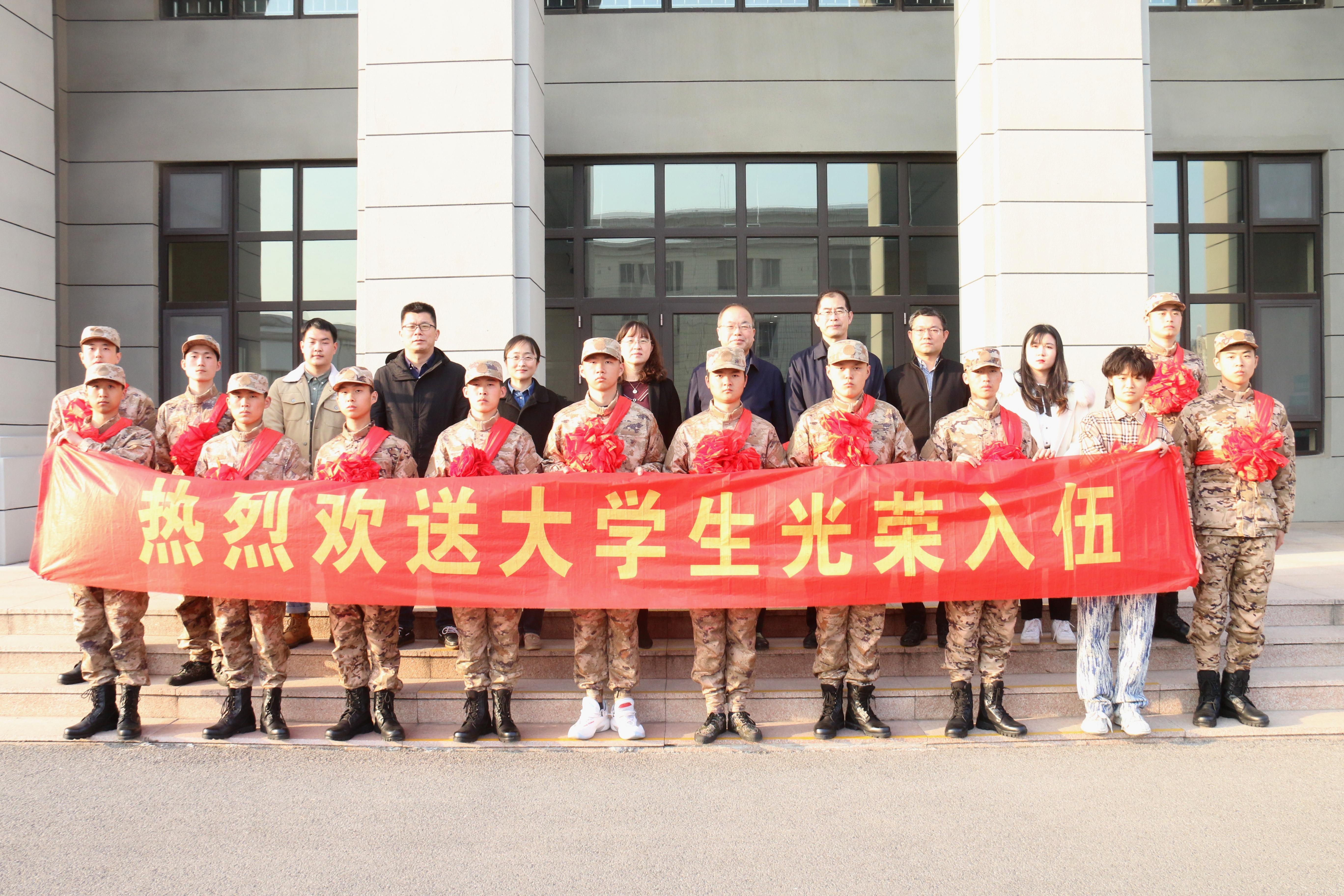3月14日下午,学校2023年春季新兵入伍欢送会在崂山校区综合楼2015会议室举行。党委常委、副校长丁林,学生工作部(武装部)部长王丽,相关学院副书记、辅导员老师代表及全体在青入伍新兵等参加欢送会。会议由武装部副部长曹永俊主持。
