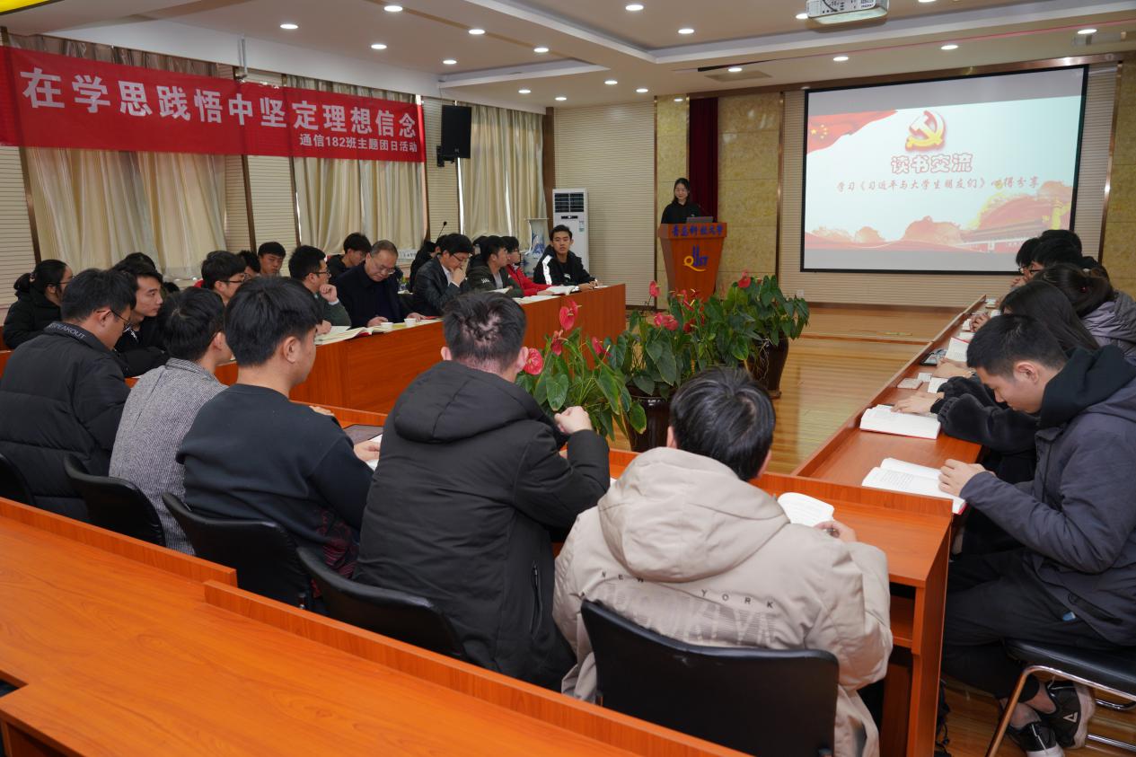 12月24日上午,信息学院通信182班团支部“在学思践悟中坚定理想信念”主题团日活动在402报告厅举行。党委常委、副校长丁林来到团日活动现场和同学们亲切交流,校团委负责人、学院相关负责人、辅导员及通信182班全体同学参加本次主题团日活动。