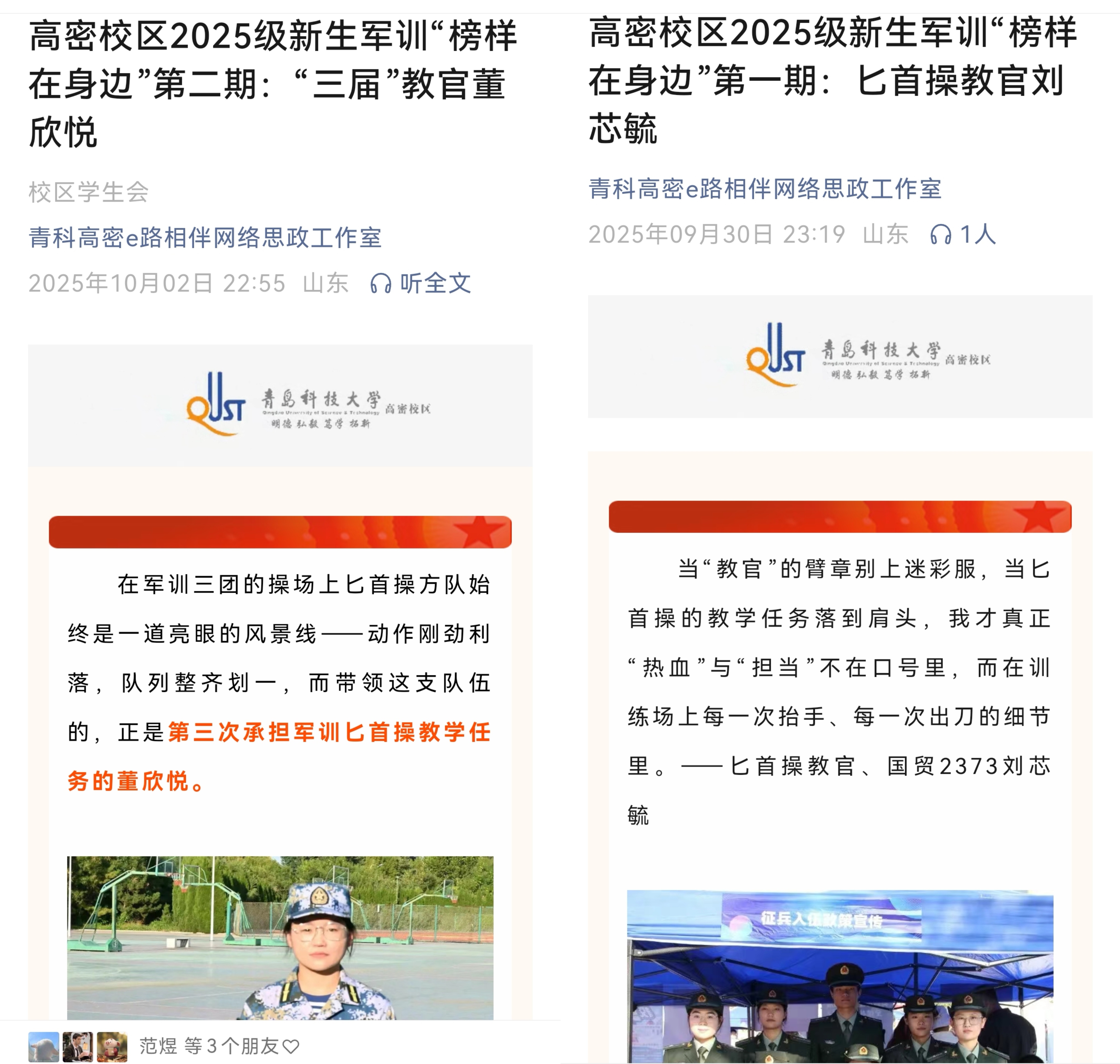 成效初显,迷彩精神浸润校园每个角落。当前,各项工作正按计划有序推进。作品征集、军事竞赛活动得到广大同学积极响应,典型选树工作成效显著,涌现出一批先进事迹。上述系列活动有效巩固了军训成果,切实将军训期间形成的纪律意识、团队精神和优良作风有机融入校园日常管理。接下来,高密校区将持续深化军训成果转化,通过常态化国防教育与军事训练延伸活动,不断强化学生国防观念、纪律意识和集体精神,为培育担当民族复兴大任的时代新人筑牢根基。