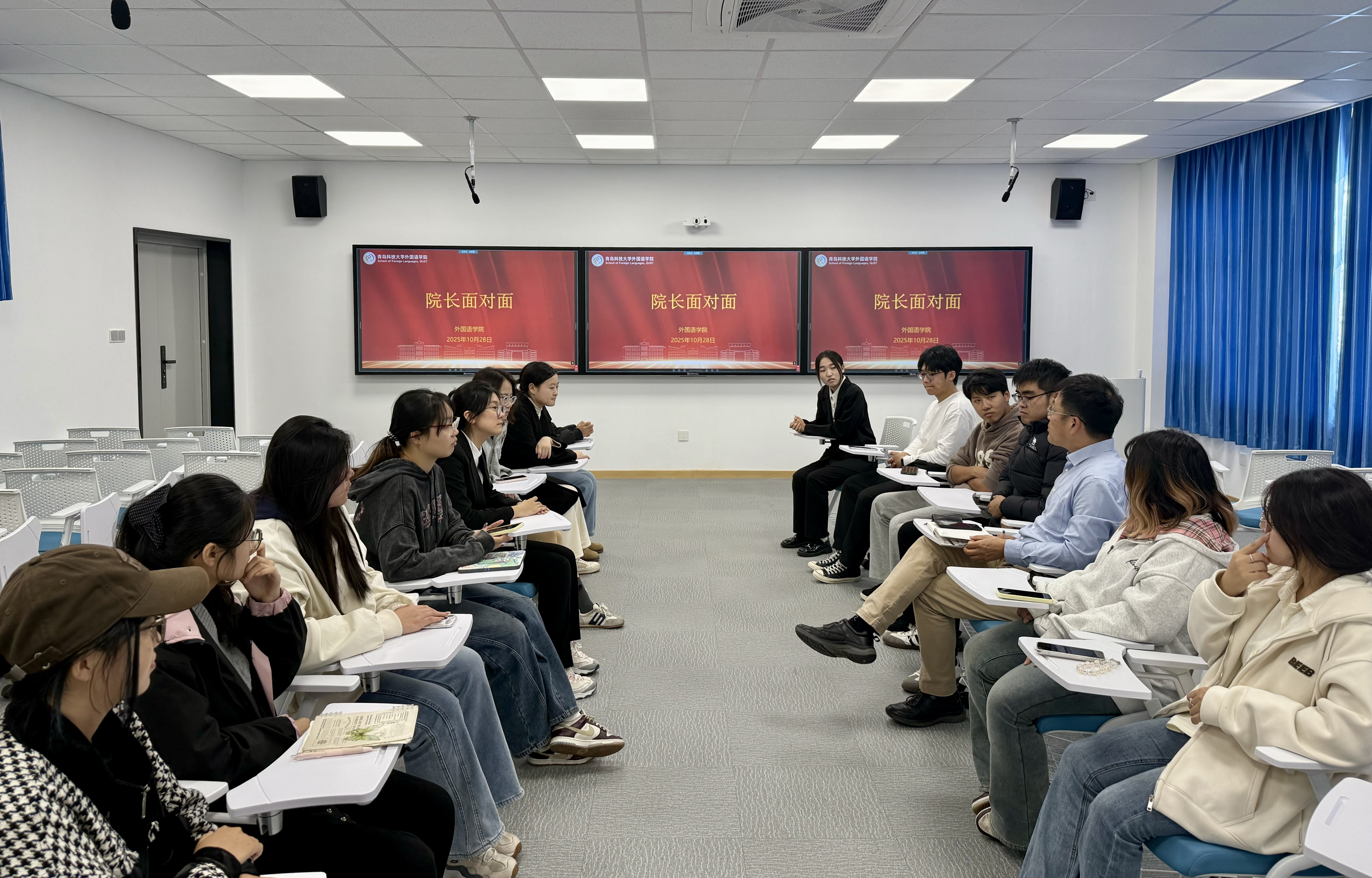 为深入落实立德树人根本任务,进一步畅通师生沟通渠道,精准对接学生成长需求,10月28日下午,外国语学院在412会议室举办“院长面对面”师生交流座谈会。院长王灏与英语242班学生围绕学业发展、生涯规划等内容开展深入交流。