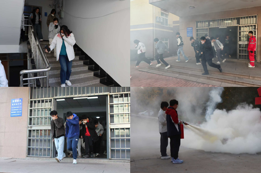 此次活动分为消防疏散演练和灭火器使用演习两部分。随着演练信号的发出,全体学生迅速按照预定方案行动,在各楼层负责人的引导下,有序地沿着疏散通道向小五四广场集合。疏散的过程中,同学们保持低姿、捂住口鼻,确保了疏散过程的安全和高效,整个演练过程紧张有序,同学们表现出了良好的应急反应能力和团队协作精神。