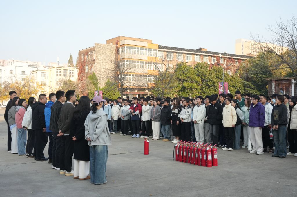 疏散完毕后,各班级迅速清点人数并向现场指挥老师报告,确保无一人遗漏。随后,保卫处消防科老师结合真实火灾案例,详细讲解了火灾的成因、初期火灾扑救方法、火场逃生技巧以及灭火器的正确使用步骤。在灭火器使用演习环节,老师现场演示了干粉灭火器的操作要领,从提、拔、握、压的规范动作到灭火时的站位与距离,都进行了耐心细致的指导。同学们踊跃参与实践,在老师的监护下轮流拿起灭火器,对准模拟火源根部进行喷射,亲身体验灭火过程,切实掌握了灭火器的使用方法。