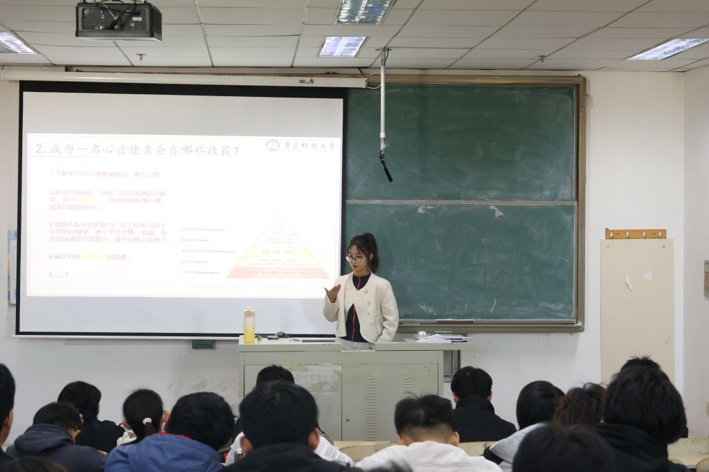 培训会上,丁雅琼围绕心音使者的角色定位、心理异常信号的识别要点、规范上报流程及学校心理支持资源等内容进行了系统讲解。她指出,心音使者作为宿舍层面的重要力量,具有贴近同学、善于观察、反应迅速等天然优势,是学院心理育人工作的“前哨”和“触角”,承担着早期发现、及时上报的关键职责。