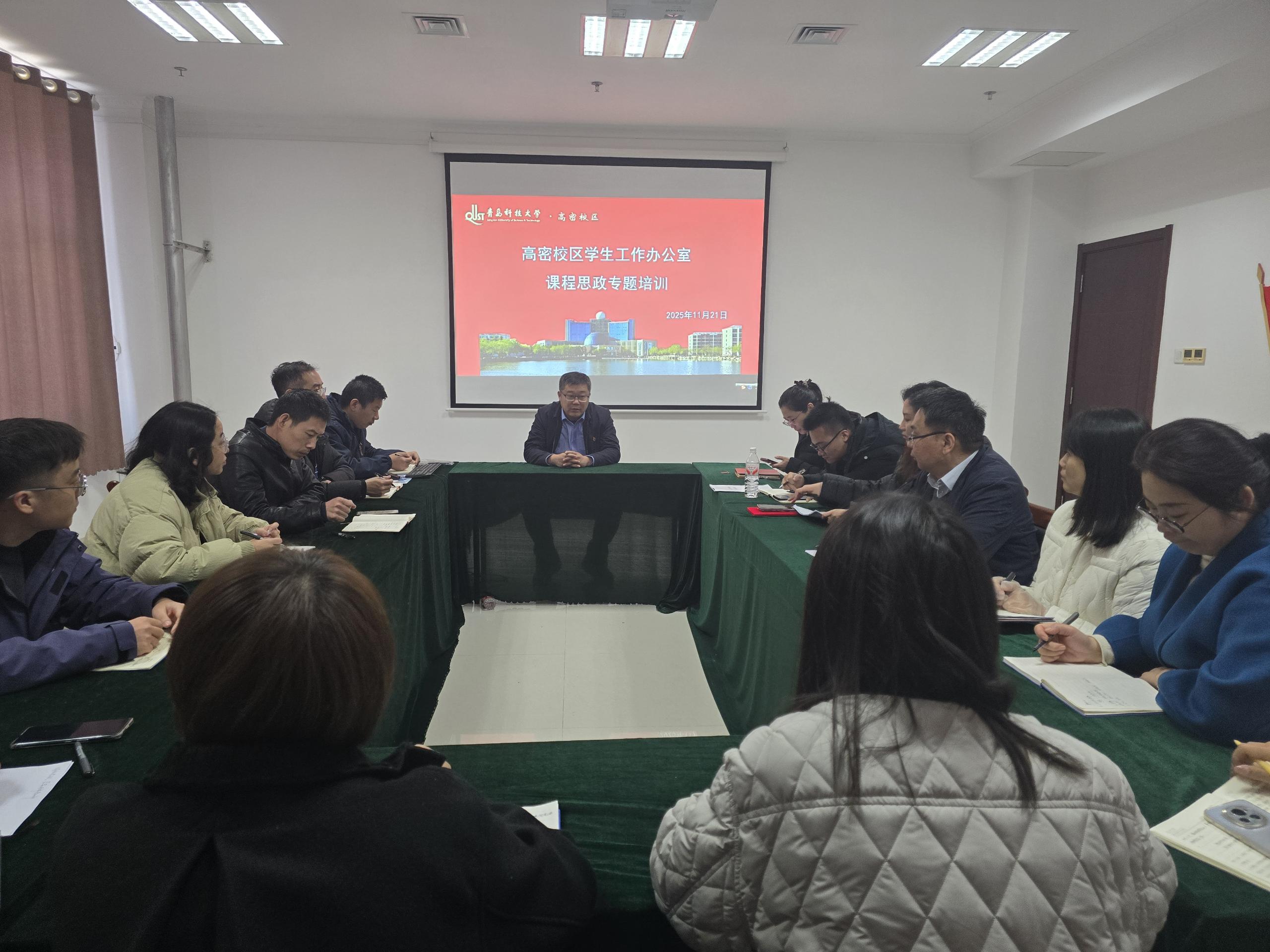 为深入贯彻习近平总书记关于教育的重要论述及全国教育大会精神,切实加强辅导员队伍能力建设,11月21日上午,高密校区在图书馆615举办“坚持立德树人,强化课程思政”专题培训。培训由校区党委副书记兼学生管理办公室主任王作辉主持,校区学工办谷永强老师担任主讲,全体辅导员参与学习。
