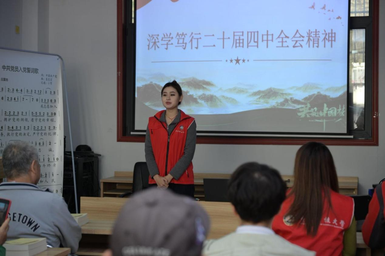 一次社区实践践行精神内涵,依托“橡尚”志愿服务队,以通俗语言解码全会民生关切,结合专业应用案例讲透理论温度,实现校社协同育人与精神传播双向赋能。