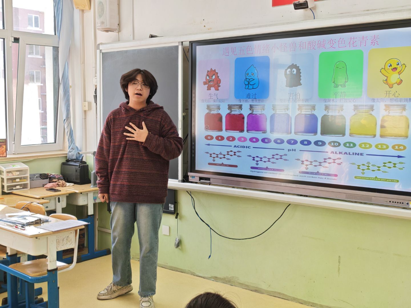 实验环节后,志愿者团队巧妙地将化学现象与情绪认知进行类比衔接。“正如花青素会因环境变化而呈现不同颜色,我们的情绪也会随着不同情境而产生波动。”主讲志愿者通过形象的比喻,帮助孩子们理解情绪变化的自然规律。这种寓教于乐的教学方式,既激发了孩子们对科学的兴趣,又潜移默化地传递了心理健康知识。