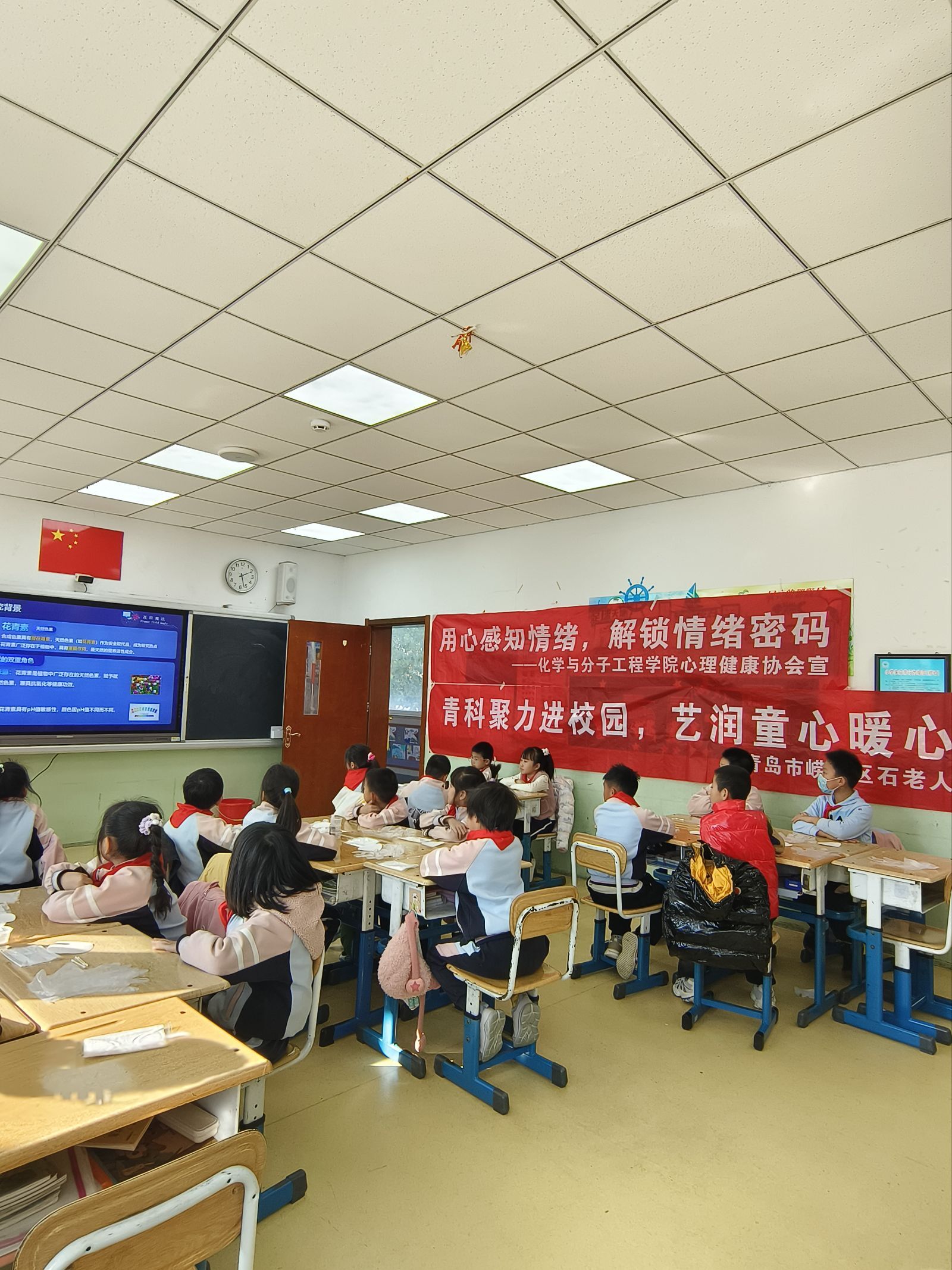 11月18日,一支由化学与分子工程学院心理健康协会、化学院研究生党支部、小分子志愿服务队组成的志愿者团队走进石老人小学课堂,联合开展一场集化学科普与心理辅导于一体的特色志愿服务活动。