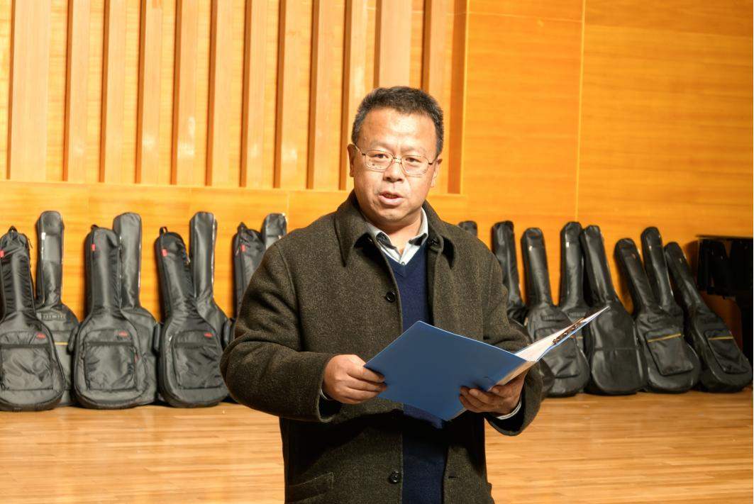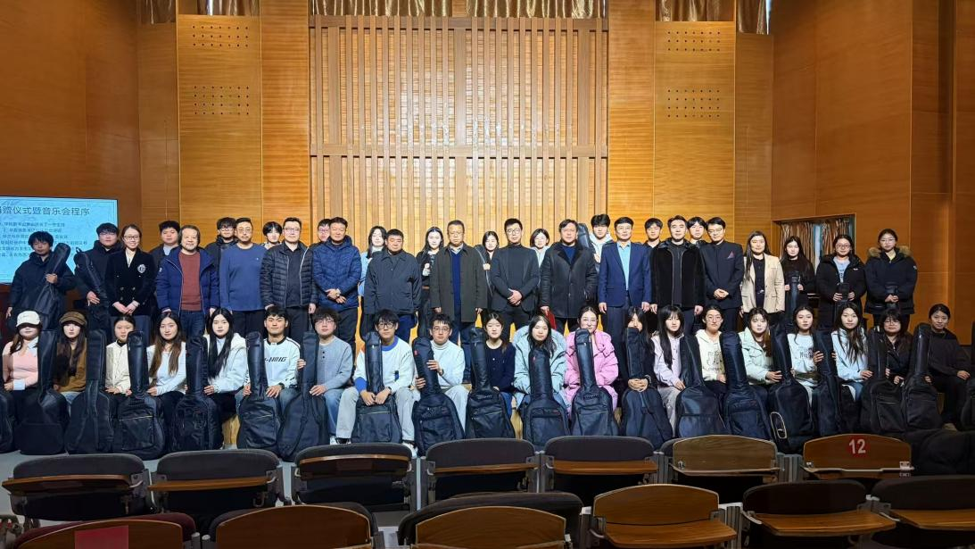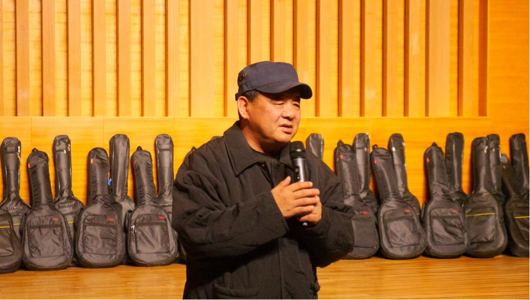刘庆在致辞中对企业的慷慨捐赠表示诚挚感谢,并介绍了学院“以美育人、以文化人”的育人理念。他强调,这批吉他不仅是教学器材,更是思政教育的鲜活载体,学院将以此为契机,把吉他教学与理想信念教育有机结合,让学生在指尖的旋律中感悟文化魅力,厚植家国情怀,成长为兼具艺术素养与责任担当的新时代人才。