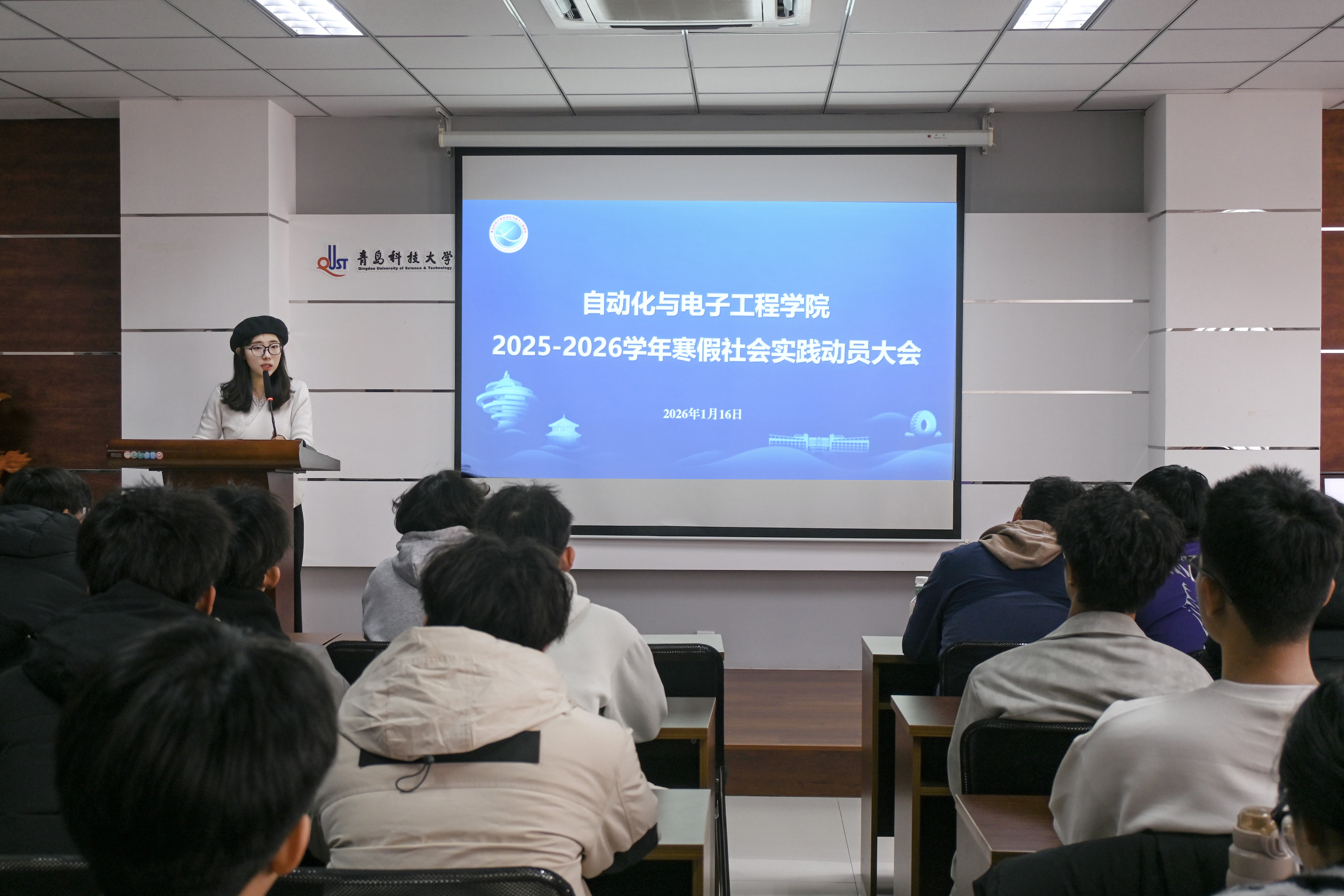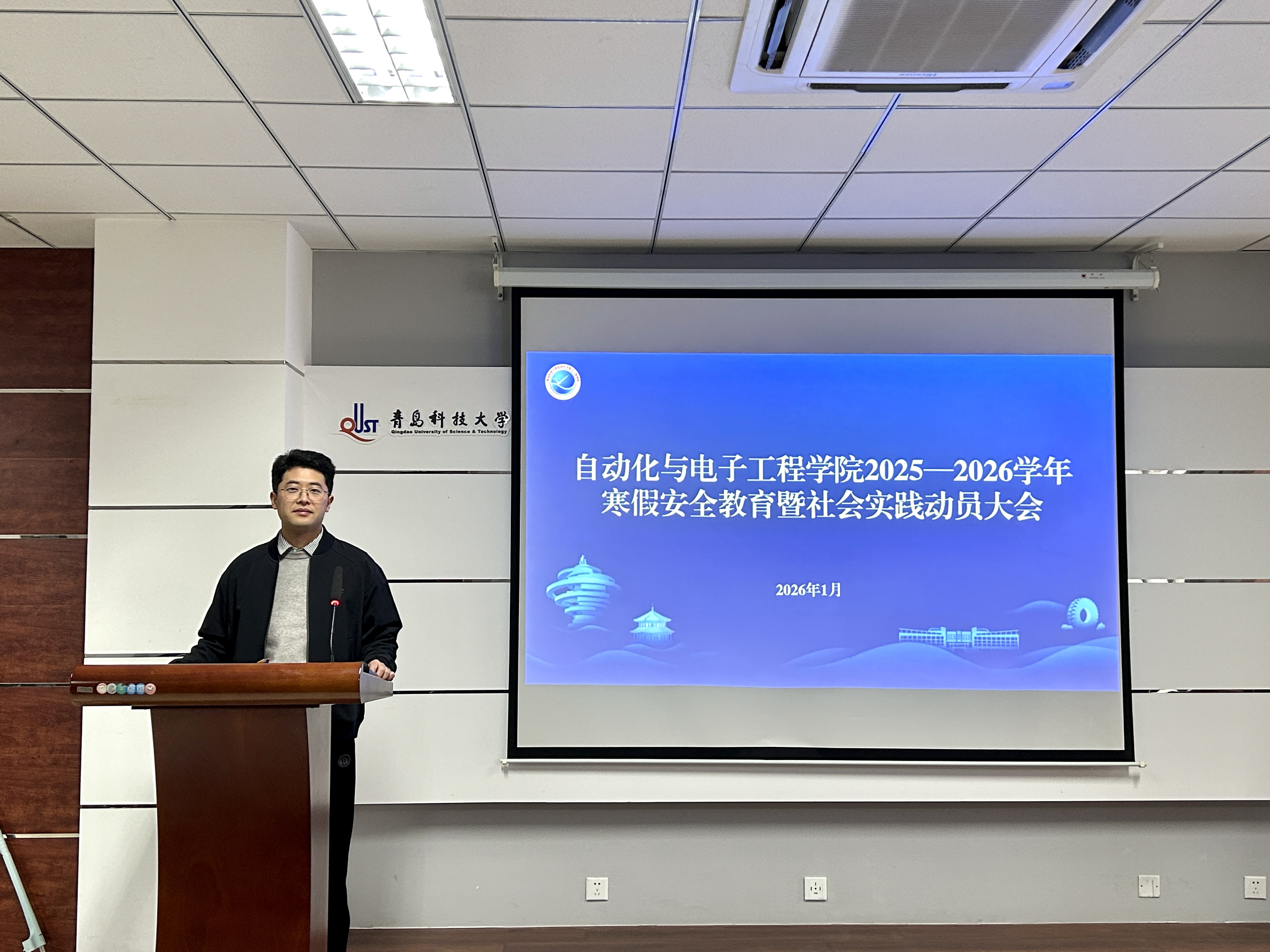 为深入学习贯彻习近平新时代中国特色社会主义思想及党的二十大精神,落实学校寒假大学生社会实践工作部署,引导青年学子扎根基层、服务社会,1月16日下午,自动化与电子工程学院在学院楼410会议室召开2025—2026学年寒假社会实践动员大会。学工办主任张郁浩、社会实践指导老师丁雅琼、学生会社会实践部负责人及2025级各班班委代表参会。