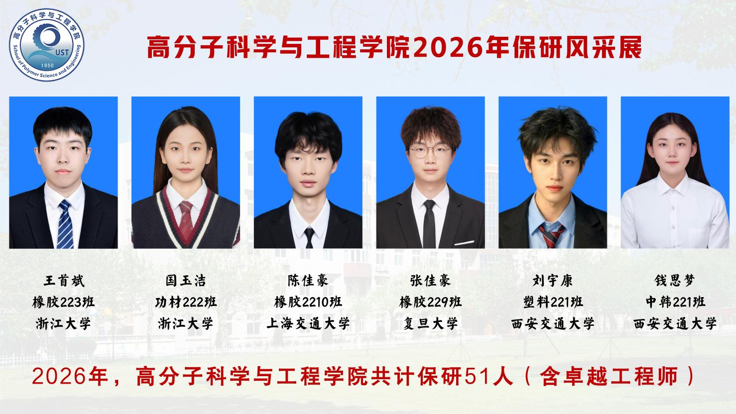 高分子学院51名学子均保研“双一流”高校