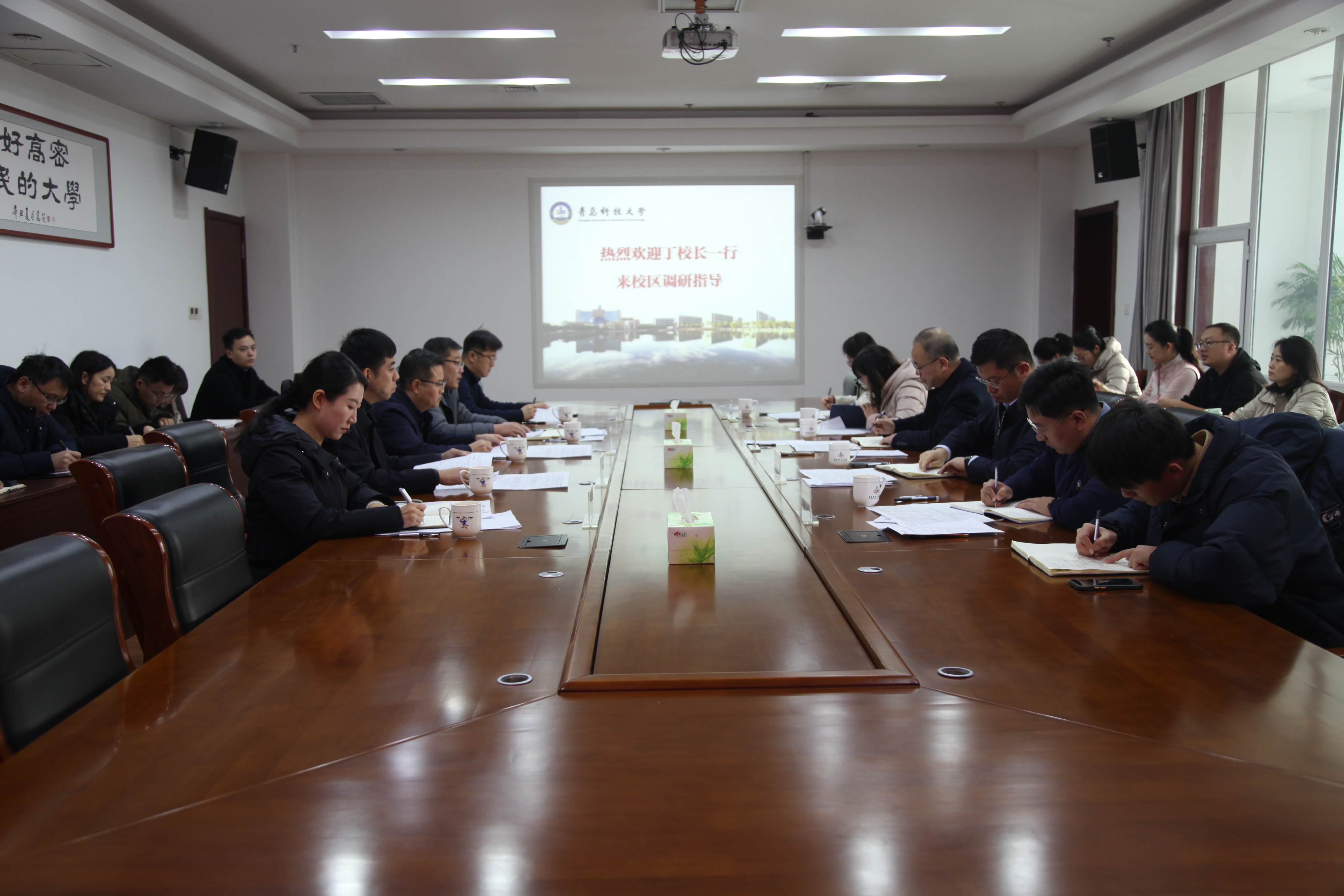 学生处处长王丽、校团委书记刘跃宁陪同,学生处、团委、高密校区相关部门负责人及全体辅导员共同参加了此次会议。