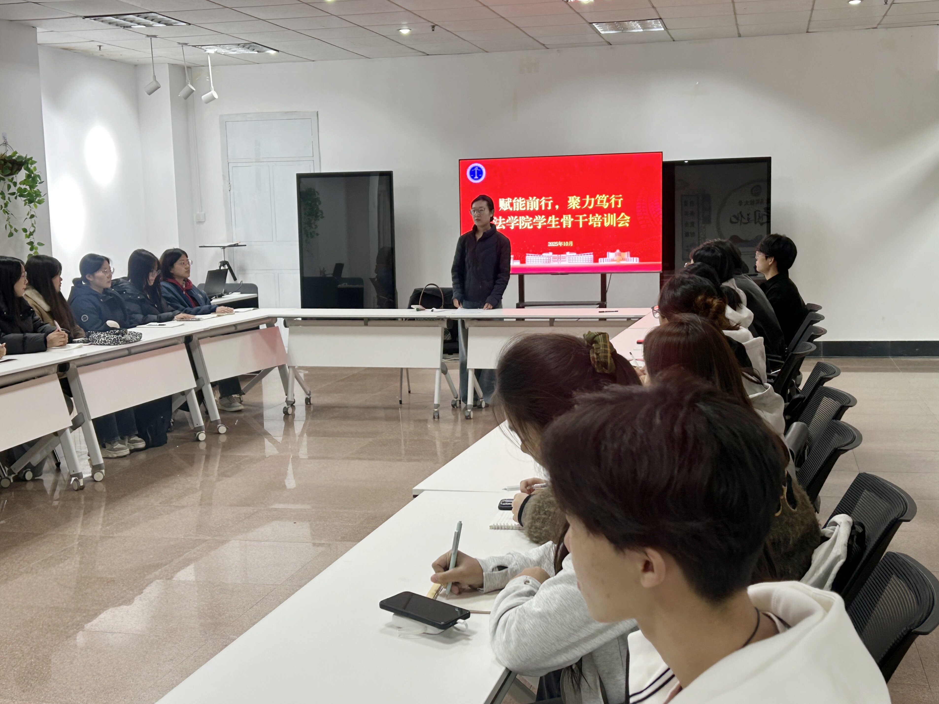 为切实将“全心全意为同学服务”的宗旨落到实处,全面提升学生骨干综合素养,10月24日,法学院在“一站式”学生社区成功举办“赋能前行,聚力笃行”学生骨干培训会。法学院辅导员王梦珂担任主讲人,法学院学生骨干代表20余人参与培训,以“赋能”为抓手,以“服务”为核心,为学生骨干队伍注入成长新动能。