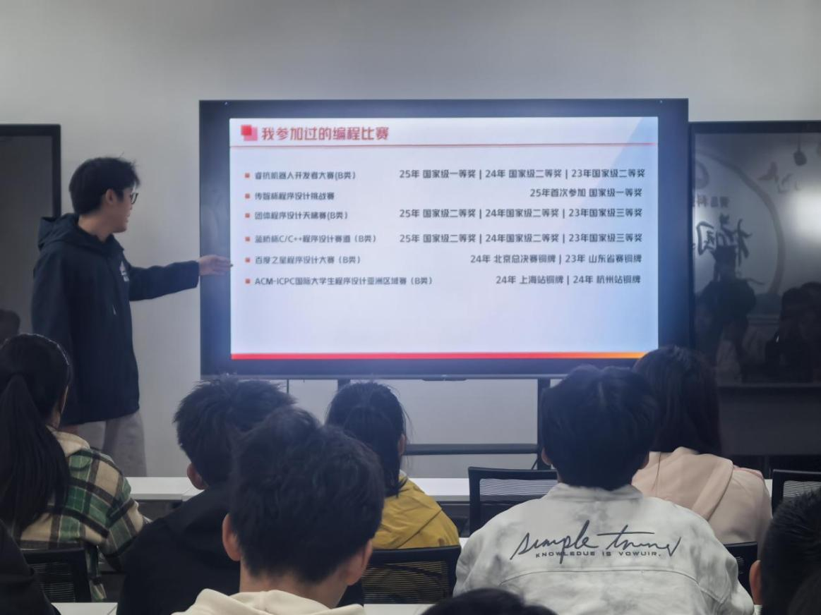 在互动交流环节,现场气氛热烈,同学们围绕“如何平衡学业与竞赛”“怎样寻找科研方向”“资助申请流程”等话题踊跃提问,三位嘉宾耐心解答、倾囊相授,赢得了阵阵掌声。