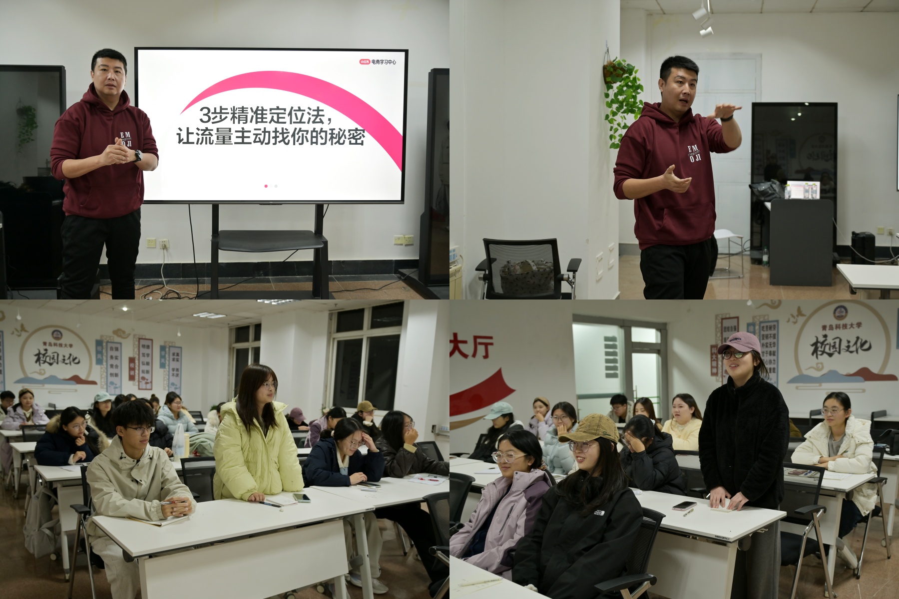 阚浩然老师深耕公关策划与品牌行销领域多年,曾获中国华东公关策划新星奖、北京奥斯汀公关活动创意奖等多个行业奖项。在本次培训中,他围绕新媒体传播的内在逻辑、个人IP的精准定位及流量密码的系统拆解等核心内容展开深入讲解,引导学生结合专业特色,明确内容创作方向,持续打造具有辨识度的个人品牌。