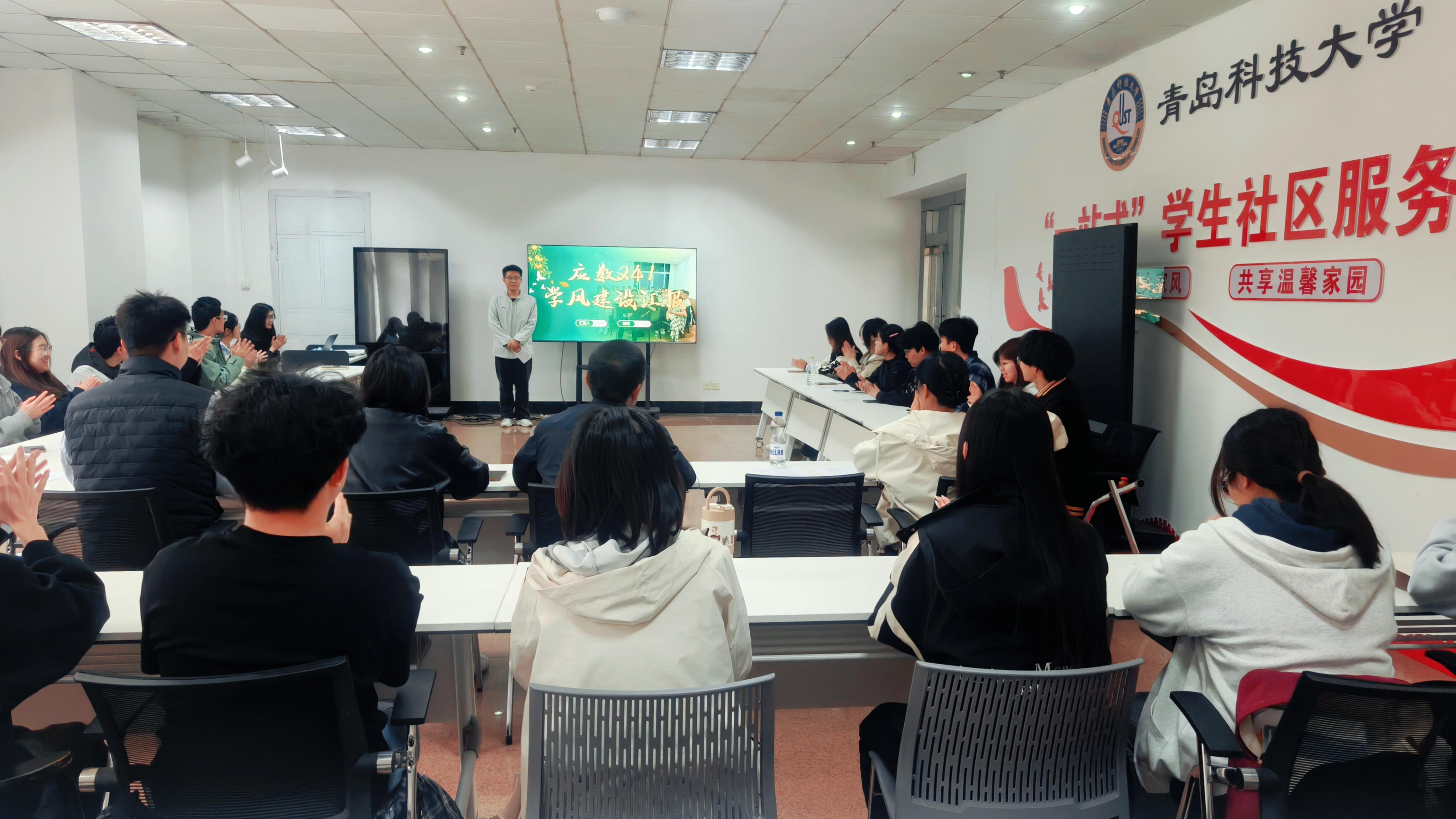 郭广海作总结讲话,指出学习重在日常积累,要求各班级抓实日常学风管理;同时,学生在学习中遇到问题应及时向老师反馈,建立健全学业问题反馈机制,推动学院学风持续向好。