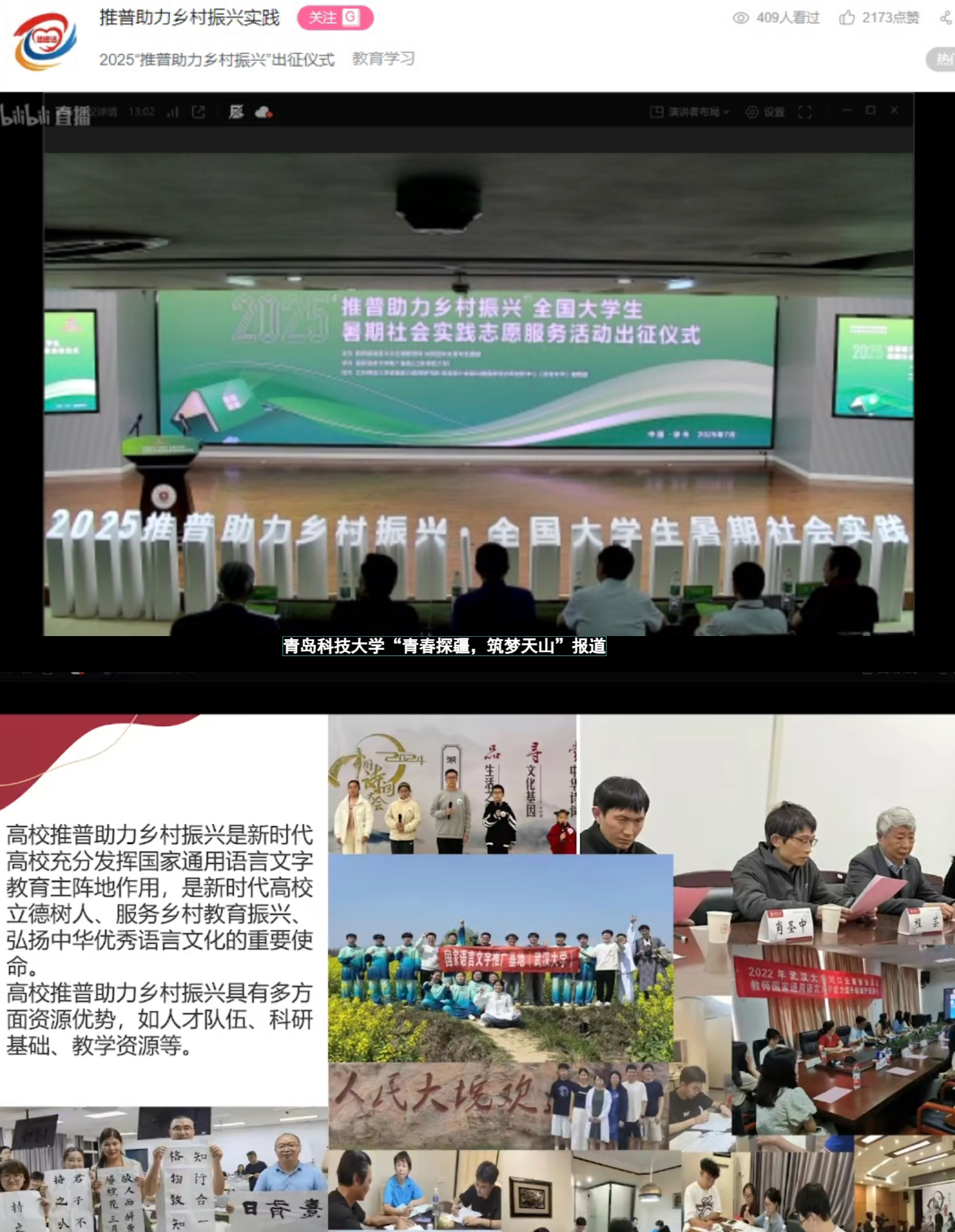 近日,教育部公布了2025年“推普助力乡村振兴”全国大学生暑期社会实践志愿服务活动入选团队名单,我院“青春探疆 筑梦天山”社会实践队从全国1680所高校的8013支团队中脱颖而出,成功入选重点团队。青岛科技大学“青春探疆 筑梦天山”社会实践队以“推普+”为核心创新实施十大主题板块活动,助力加大国家通用语言文字推广力度,积极服务乡村振兴战略,铸牢中华民族共同体意识,以实际行动为中国式现代化贡献青科大学子的青春力量。