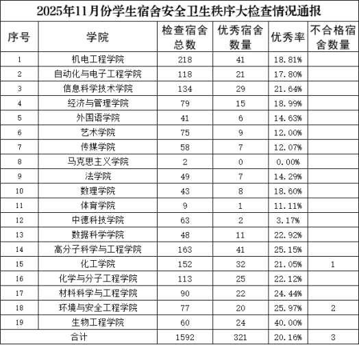 2025年11月份学生宿舍安全卫生秩序大检查情况通报
