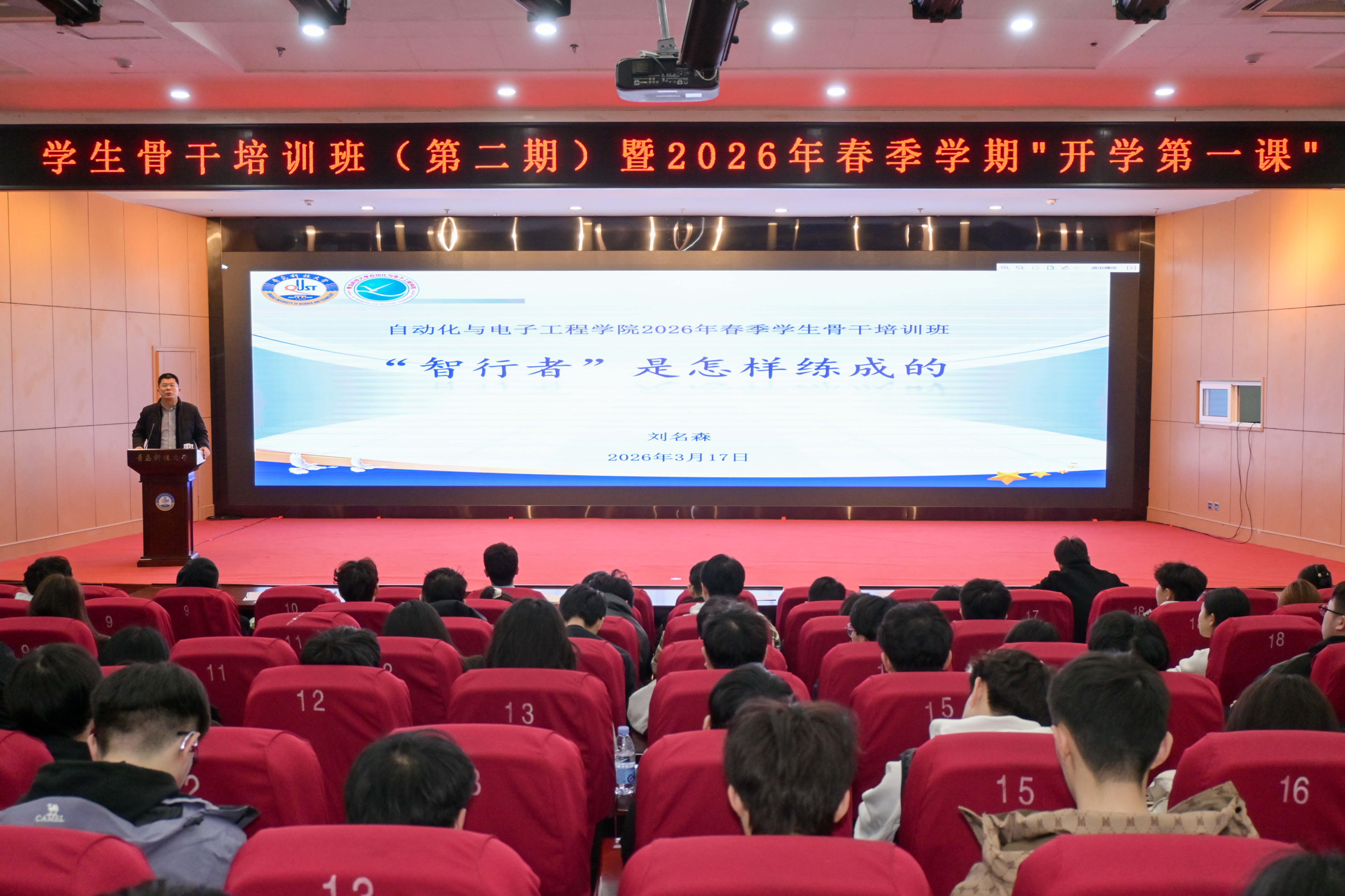 为强化学生骨干队伍建设,锚定新学期学生工作方向,自动化与电子工程学院今日分别在北院团学报告厅、第三报告厅开展两期学生骨干培训班。学院党委副书记兼副院长刘名森出席本次活动,全体专职辅导员及学院学生骨干齐聚一堂,共同参与培训学习,活动由学院团委副书记兼学工办副主任张郁浩主持。