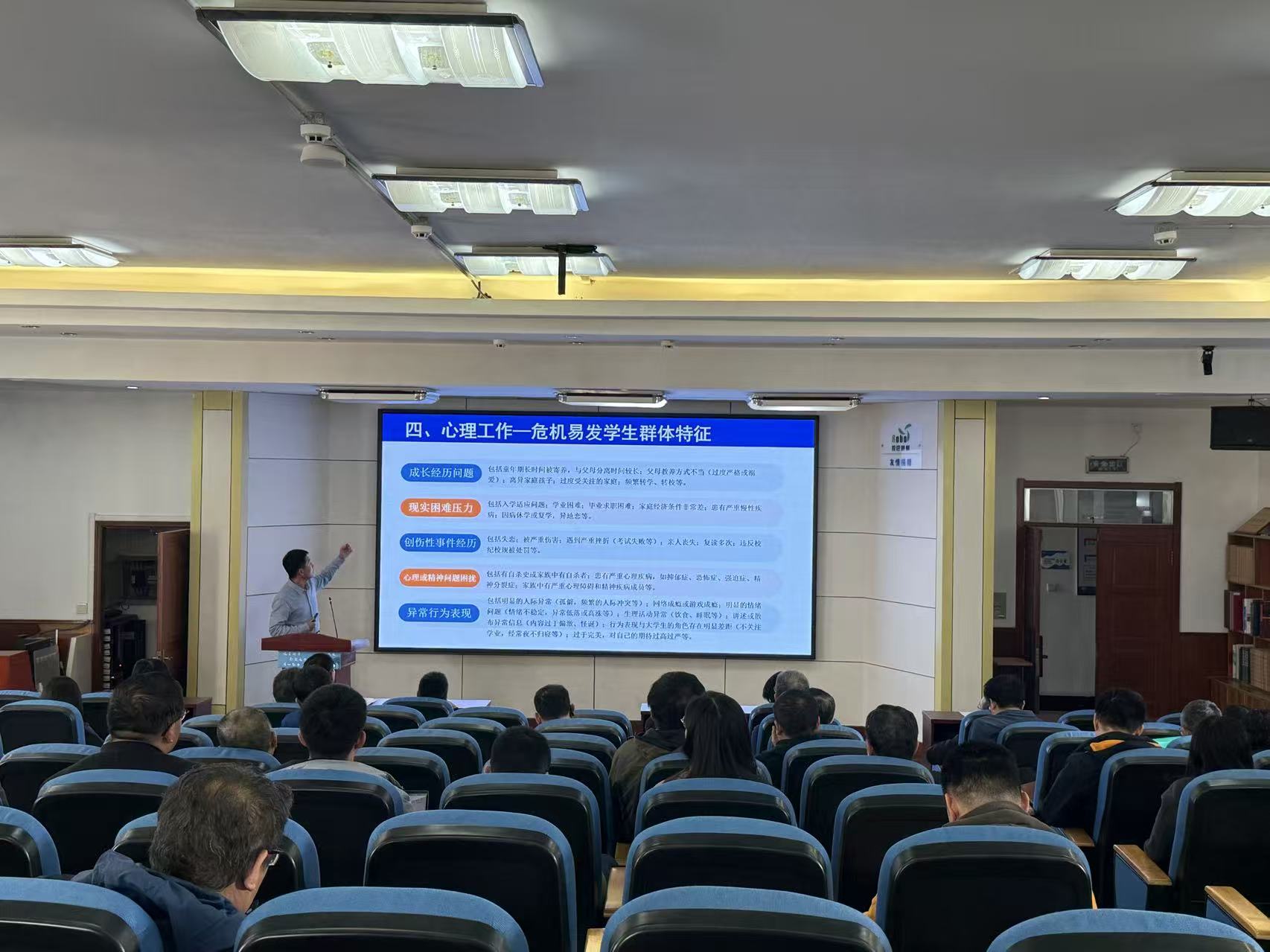会上,贾明明详细介绍了学院心理健康工作概况,分析了本、研学生心理危机具体情况,强调班主任(导师)在大学生心理健康教育中的关键作用。他指出,社会的多元化导致学生心理问题愈发复杂多样,对班主任(导师)工作提出新挑战与要求,需不断提升心理危机识别及应对能力。
